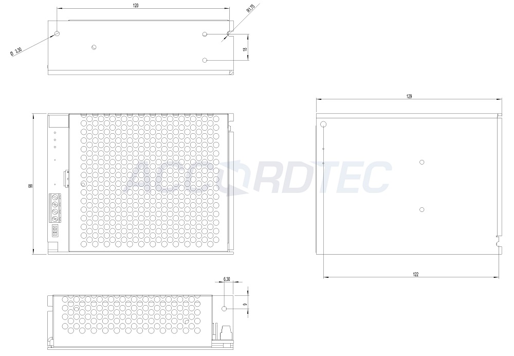 Компактные габариты. Габаритные размеры: 129x98x38 мм, облегчают интеграцию в ограниченные пространства.