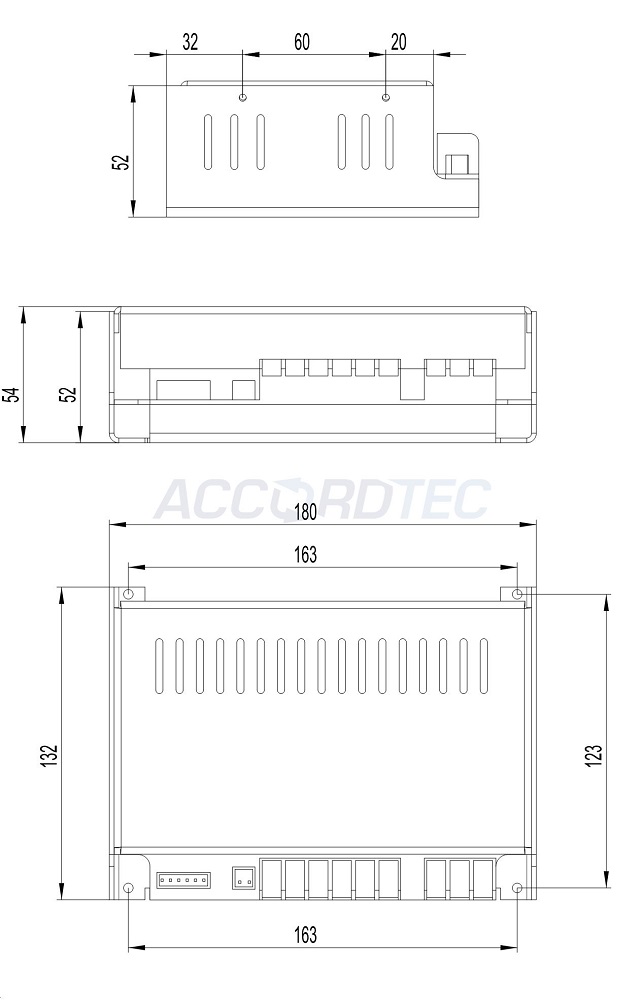 Компактные размеры. Габаритные размеры: 180х52х132 мм.