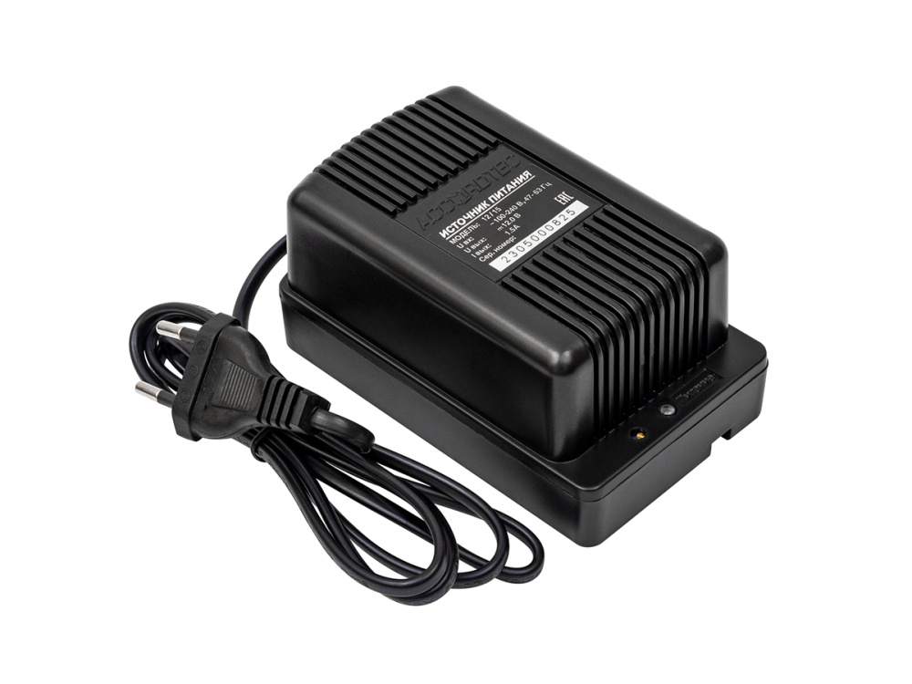 Стабилизированное выходное напряжение. Источник питания выдает стабильное напряжение 12,6 В DC. Предусмотрена возможность регулировки в пределах 11 В – 13,5 В ± 5% для точной настройки под конкретные требования оборудования.