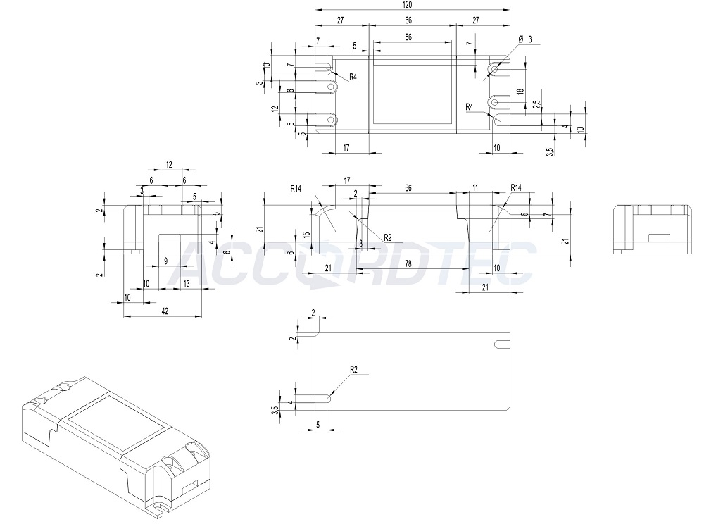 Габаритные размеры: 120x42x27 мм.