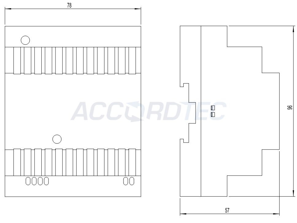 Компактность. Габаритные размеры: 78х 56х96 мм., что обеспечивает легкую интеграцию в ограниченное пространство DIN-рейки.