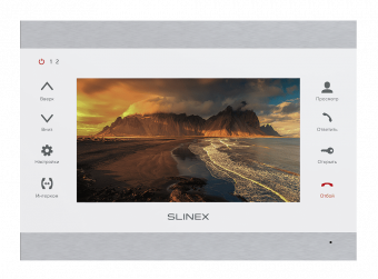 Абонентский монитор Slinex SL-07IPHD Silver+White управляет электрозамками, рассчитан на две аналоговые вызывные панели и две камеры, подключение к интернету по Ethernet-кабелю или через Wi-Fi (выносная антенна в комплекте), управление (прием вызова, просмотр камер и архива, отпирание замка) со смартфона или планшета на базе ОС Android или iOS через мобильное приложение Cloud Call. Оборудован цветным IPS-дисплеем 7" с разрешением 1024x600, сенсорными функциональными кнопками, слотом для карты microSD емкостью до 64 Гбайт. Поддерживает объединение до трех мониторов в интерком. Функциональность: Стандарты видеосигнала — AHD в разрешении 1 Мп и 2 Мп, CVBS.Просмотр изображений с панелей (до 60 с.) и камер (без ограничения по времени).Продолжительность разговора при вызове — 120 с.Настройка скорости срабатывания реле замка (отдельно для каждой панели).Автоматическая запись видео при вызове или сигналу детектора движения.Переадресация вызова на другой монитор и внутренняя связь (разговор с другим монитором) в интеркоме.Выбор мелодии вызова из предустановленных (16 полифоний) — для каждой панели отдельно.Настройка громкости разговора, громкости и продолжительности звучания вызова, чувствительности микрофона.Беззвучный режим.Подсветка клавиш, сопровождение нажатия клавиш звуком (отключаемые функции). SL-07IPHD Silver+White оборудован микрофоном, динамиком, индикаторами питания и переговоров с каждой панелью. Питание — 100 ~ 240 В AC (встроенный адаптер). Потребляемая мощность в режиме работы — 8 Вт, ожидания — 4 Вт. Рабочие температуры — -10 °C… +55 °C. Корпус изготовлен из алюминия и стекла. Монтаж — накладной (кронштейн, саморезы, дюбели и провода в комплекте). Размер — 230x165x22 мм.