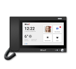 Монитор консьержа, Сенсорный экран 10", видеоинтерком между домофонами. Пластиковый корпус, кнопка быстрого открытия замка. Получение тревожных сообщений от мониторов. Подключение до 1000 индививидуальных и 100 многоабоненских панелей. Просмотр до 100 камер. Питание: PoE 802.3af и + 12В. Поддержка SIP P2P. Размер: 303×194×64 мм. Цвет - черный.