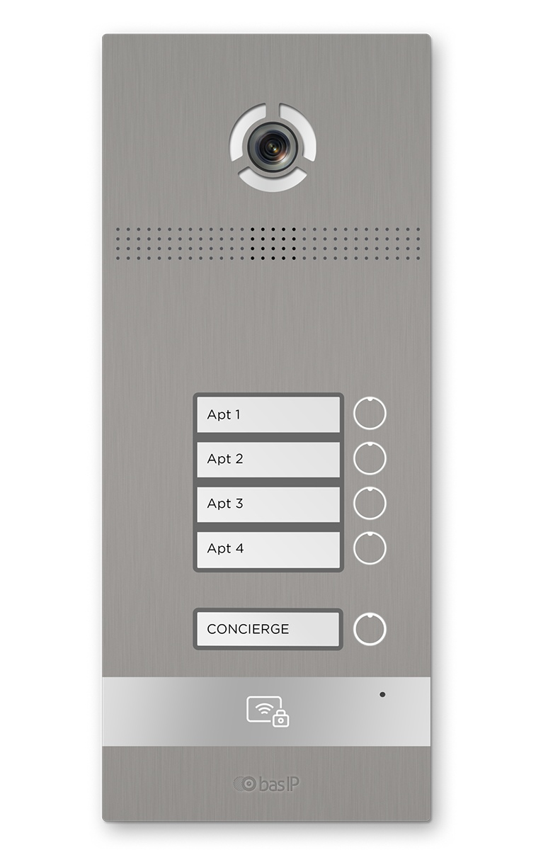 Вызывная панель на 4 абонента. Поддержка технологии "UKEY": считывание карт, брелоков и мобильных идентификаторов по стандартам EM-Marin, Mifare® Plus и Mifare® Classic, Bluetooth, NFC. 3D идентификация по распознаванию лиц - 6000 лиц. Память до 20 000 идентификаторов (ключей). Цифровая IP камера: 1.3 Мп, 1/4” CMOS, угол обзора 90°. Врезной монтаж. Накладной монтаж - опционально (кронштейн BR-AA12 SILVER). Степень защиты: IP65. Температурный режим: -40 до +65 °C. Механические кнопки с подсветкой, отдельная кнопка вызова консьержа. Встроенное реле. Питание: PoE 802.3af и +12В. Поддержка SIP, P2P, Wiegand 26, 32, 34, 37, 40, 42, 56, 58, 64, RS485. Размер: 379×158×49 мм. Цвет -серебро. Гарантия - 5 лет. Открытый API, поддержка ПО Link.