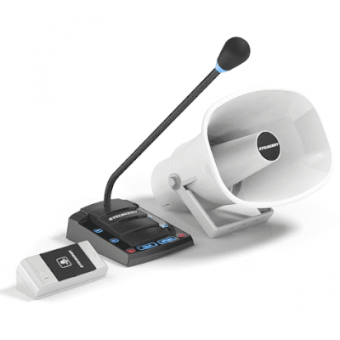 Режим громкой связи организован без внешних усилителей — пульт кассира оснащен встроенным усилителем D-класса. Для качественной слышимости при сильных шумовых нагрузках предусмотрен режим «Симплекс» — оператор вручную меняет направление трансляции звука. Абонентская панель, рупор и кабель для его подключения адаптированы к условиям улицы (-40... +50).