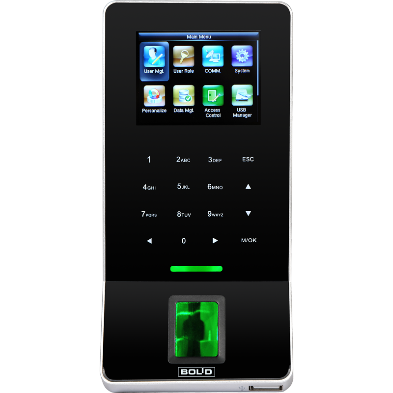 Биометрический (отпечатки пальцев) контроллер доступа работа в составе АРМ "Орион Про" и в автономном режиме встроенный считыватель EM-Marine, клавиатура, TFT ЖК-дисплей Ethernet вход подключения датчика двери, кнопки "Выход", релейный выход НЗ/НР, U-коммут.36 В, I-коммут.2 А U-пит.9.6...14 В, I-потр.1 А IP20, t-раб.0...+45°С, 159х78х20 мм.