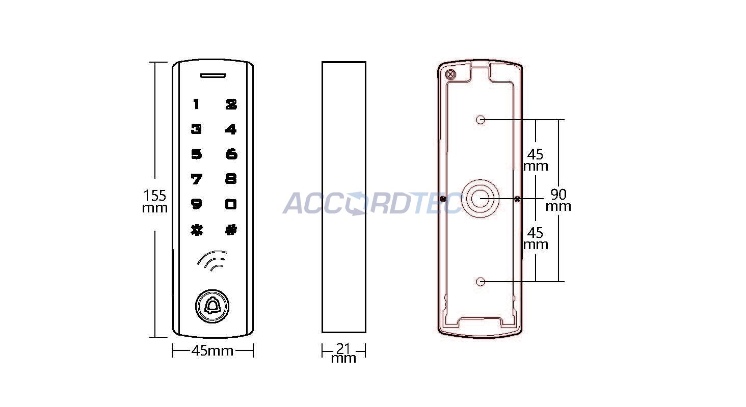 Интегрированное решение. Кодонаборная панель сочетает в себе функции контроллера и считывателя карт EM-Marine, что значительно упрощает монтаж и настройку системы контроля доступа.