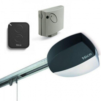 Комплект Nice SPIN22BDKCE для автоматизации секционных ворот площадью до 17.5 м2 или подъемно-поворотных площадью до 14.7 м2 состоит из привода SN6041, направляющей рейки SNA6, пульта ДУ ON3EBD и приемника OXIBD (приемник и передатчик с обратной связью).