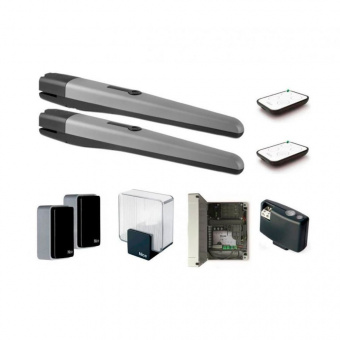Комплект Nice TOONA4024BDKCE в составе двух электромеханических приводов TO4024, блока управления MC824H, фотоэлемента Medium BlueBus EPMB, приемника OXIBD, двух пультов ДУ ON3EBD и лампы ELDC рассчитан на автоматизацию распашных ворот со створками весом до 500 кг, шириной до 3 м.
