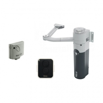Комплект Nice WALKY1024BDKCE, состоящий из привода WL1024C, приемника OXIBD и двух пульта ДУ ON3EBD, рассчитан на автоматизацию распашной створки высотой до 2 м, шириной до 1.8 м, весом до 180 кг.