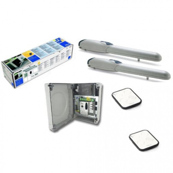 Комплект Nice WINGO3524KCE для распашных ворот шириной до 3.5 м, весом до 500 кг включает в себя два электропривода WG5024, блок управления MC424L и два пульта ДУ FLO2RE.