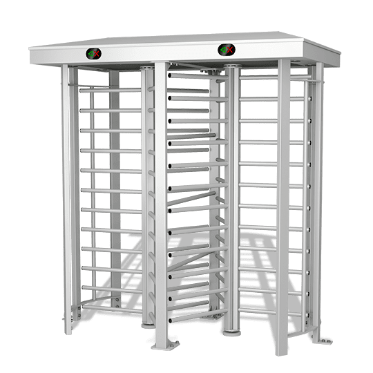 Турникет адаптирован к уличной эксплуатации под навесом — в любое время года: диапазон рабочих температур расширен до -40 °С… +50 °С, влажность — до 95 %, защита корпуса от пыли и влаги отвечает требованиям IP54. Состоит из верхнего модуля, двух локальных ограждений и двух роторов с тремя лопастями на каждом. Выполняет функции двух турникетов, но конструктивно занимает меньшую. площадь. Укомплектован четырьмя считывателями EM-Marin, четырьмя индикаторами статуса прохода, размещенными в верхнем модуле. Поддерживает запрет прохода, свободный проход, однократный проход в двух направлениях и многократный — в одном. Параметры: Пропускная способность — 60 чел/мин через две зоны прохода.Независимое управление для каждой зоны.Две зоны прохода шириной 585 мм.Высота зоны прохода — 1995 мм.Длина штанги — 530 мм.Материал корпуса — окрашенная сталь, штанг лопастей — нержавеющая сталь. Питание — 220 В AC. Ток, потребляемый в режиме ожидания, — 0.2 А, прохода — 0.2 А, максимальный — 0.4 А. Размер — 2240x2060x1255 мм. Вес — 400 кг.Контроллер «Эра 2000»
