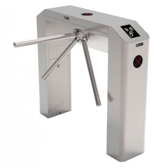 Тумбовый турникет-трипод Блокпост ТМБ 800 поддерживает несколько режимов работы контроллера, пропуск по карте, сигналу пульта с кабелем или ДУ. Оборудован считывателем карт HID и EM-Marin. Переходит в режим свободного прохода при потере электропитания. Характеристики: Длина штанги — 600 мм.Ширина зоны прохода — 650 мм.Одно направление прохода, возможность установки двунаправленной системы.Пропускная способность — до 30 чел./мин.Наработка на отказ — ?1 000 000 проходов.Режим опускания штанг «Антипаника» — срабатывание по сигналу пульта, системы пожарной сигнализации; механическая разблокировка ключом (в комплекте). ТМБ 800 оснащен индикатором работы и сухими контактами для подключения к серверу или металлодетектору. Для расширения функционала предусмотрена дополнительная комплектация сканерами отпечатка ладони или пальца, системой распознавания лиц, считывателем штрихкода, картоприемником, светофором, счетчиком количества проходов. Корпус выполнен из нержавеющей стали марки AISI 304. Диапазон рабочих температур — -28 °С… +60 °С (работа в неотапливаемом помещении или на улице с защитой от осадков). Питание — 24 В, напряжение индикатора — 12 В. Габариты — 1100x260x980 мм. Вес — 46 кг.