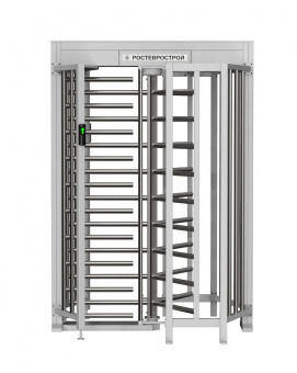 Нормально открытый полноростовой роторный 3-лопастный турникет Ростов-Дон ПР1Ш/3М2 У поддерживает режим шлюза. Для перевода из одного состояния в другой нужна переустановка ограждающих конструкций — гребенки, формирователей прохода, преграждающих труб. Стандартные режимы работы: Проход запрещен в обе стороны.1-кратный проход в одну сторону.Групповой проход в одном направлении.Групповой проход в двух направлениях. Специальные режимы: Тревога — при нарушениях прохода лопасти блокированы стопорным механизмом, активирована звуковая сигнализация (зуммер можно отключить).Срабатывание пожарного шлейфа — проход открыт в обе стороны в групповом режиме, antipassback отключен.Калибровка — установка исходного положения штанг, прерывистый звук зуммера. Для организации эвакуации предусмотрены разблокировка через пожарный шлейф, переключение в режим группового прохода в обе стороны, отключение питания. Характеристики: Пропускная способность при разовом проходе в режиме турникета — 30 чел/мин, в режиме шлюза — 15 чел/мин, свободном проходе в режиме турникета — 40 чел/мин.Зона прохода: ширина — 490 ±10 мм, высота — 2050 мм.Допустимое статическое усилие на центр преграждающей лопасти — 200 кгс.Наработка на отказ — 2 млн проходов. Турникет рассчитан на круглогодичную уличную эксплуатацию под навесом: корпус соответствует стандарту защиты от пыли и влаги IP43, электронные платы покрыты двойным слоем лака, рабочие температуры — -40 °С… +50 °С, корпус защищен цинкосодержащим слоем и порошковой краской цвета «белый антик», предусмотрен кожух утепления и система подогрева механизма турникета до +5 °С (настраиваемый параметр), состоящая из модуля термостабилизации и лампы накаливания R2T13. Функциональность: Механическая блокировка механизма вращения вручную (два ключа в комплекте) при сбое электропитания.Блокировка движения лопастей в обратную сторону при прохождении человеком середины пути (от 60°), срабатывает по команде контроллера.Плавное движение механизма вращения с лопастями за счет гидромеханического доводчика.Четкая фиксация лопастей в крайних положениях во избежание травматизма. ПР1Ш/3М2 У укомплектован цифровым магнитным датчиком углового положения штанг. Предусмотрены лампы, освещающие зону прохода (включение — с ПДУ) и индикаторы состояния турникета. Питание турникета — 12 В, системы подогрева — 24 В DC. В комплект входит адаптер только для системы обогрева. Энергопотребление турникета при несанкционированном проходе с включенным освещением — 42 Вт, при разрешенном проходе — 21 Вт, в режиме ожидания — до 9 Вт. Энергопотребление системы подогрева — до 60 Вт. Размер — 1570x1600x2250 мм. Вес — 280 кг.
