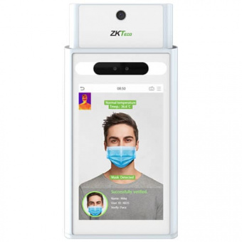 Биометрический терминал доступа ZKTeco Elite Access (TI) поддерживает измерение температуры человека, технологию компьютерного зрения и интеллектуальный алгоритм высокоточной идентификации Visible Light для точного распознавания лиц, Hi-Fi-аудио, подключение внешнего картридера по Wiegand, идентификацию по лицу, карте, коду. Оборудован 2 Мп камерой с CMOS-матрицей (Starlight, 0.5 ~ 50 000 лк), считывателем карт EM-Marin, тепловизионным модулем, сенсорным цветным 8" IPS LCD-дисплеем, микроволновым датчиком оценки расстояния (до 3 м) для вывода терминала из режима сна. Построен на базе двухъядерного процессора (тактовая частота 900 МГц). ПО — ZKBioSecurity. Емкость RAM — 512 Мбайт, Flash — 8 Гбайт. Функциональность: 30 000 шаблонов лиц, 50 000 пользователей, 20 000 фото пользователей, 10 000 фото событий, 1 млн логов в журнале событий.Измерение температуры в диапазоне +20 °С… +50 °С с точностью ±0.3 °С за 0.1 с., дальностью 30 ~ 120 см.Скорость распознавания лиц — 0.3 с.Обнаружение респираторной маски.Распознавание лиц в маске.Алгоритм защиты от спуфинга.WDR — минимизация влияния перепадов уровня освещенности на качество изображения.Яркость дисплея — 400 кд/м2.Запрет повторного прохода.Защита от идентификации под принуждением.Тревога тампера. Elite Access (TI) поддерживает TCP/IP. Из интерфейсов на борту RJ-45, RS-485, RS-232, Wiegand (вход и выход), реле замка, вход датчика двери и кнопки выхода, дополнительный вход, тревожный выход. Питание — DC 12 В (3 А, без адаптера в комплекте). Потребляемый ток — 2 А. Рабочие температуры — +20 °С… +35 °С. Размер — 144x296.4x25.5 мм. Вес — 1.42 кг.