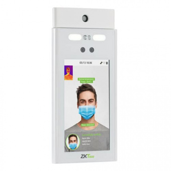Биометрический терминал доступа ZKTeco RevFace15 (TI) поддерживает идентификацию по геометрии лица с одновременным контролем температуры лба человека (противоэпидемические меры). Оснащен оптической и тепловизионной (построенной на неохлаждаемом микроболометре) камерами, цветным сенсорным TFT-экраном с диагональю 7" и регулируемой LED-подсветкой. Базируется на 4-ядерном процессоре ARM Cortex-A7 с тактовой частотой 1.2 ГГц. Память рассчитана на 10 000 фото лиц, 200 000 событий. Объем Flash — 8 Гбайт, RAM — 1 Гбайт. ПО — ZKBioAccess IVS, ОС — Linux. Функциональность: Измерение температуры за 0.1 с. в диапазоне +20 °С… +50 °С с точностью ±0.3 °С; расстояние — 30 ~ 120 см.Скорость распознавания лица — 0.2 с.Детекция респираторной маски, распознавание лиц в маске.Алгоритм антиспуфинга для защиты от подделки.Параметры камеры: разрешение 2 Мп, CMOS-матрица с технологией Starlight, минимизация влияния разноконтрастного освещения на качество изображения (WDR).Запрет повторного прохода.Подключение внешнего считывателя по Wiegand.Тампер. RevFace15 (TI) поддерживает передачу сигналов по протоколам TCP/IP и Wi-Fi. Из интерфейсов на борту сетевой порт RJ-45, вход и выход Wiegand, последовательные порты RS-485 и RS-232, реле замка, входы датчика двери и кнопки выхода, тревожный выход, дополнительный вход (для сирены, детектора возгорания). Питание — DC 12 В (3 А). Рабочие температуры — +10 °С… +35 °С. Размер — 120x267x28 мм.