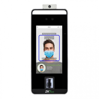 Биометрический терминал доступа ZKTeco SpeedFace-V5L-RFID (TD) с функцией детекции повышенной температуры тела поддерживает многофакторную аутентификацию по геометрии лица, ладони, отпечатку пальца, биометрические алгоритмы ZKFace V5.8, ZKFinger V10.0 и ZKPalm V12.0. Оборудован камерой с разрешением 2 Мп, модулем определения температуры, сенсорным цветным экраном 5" TFT с виртуальной клавиатурой. Объем Flash — 8 Гбайт, RAM — 1 Гбайт. В основу терминала положен 2-ядерный процессор (тактовая частота 900 МГц). ОС — Linux, ПО — ZKBioAccess, ZKBioTalk. Функциональность: 6000 фото лиц, 6000 шаблонов отпечатков пальца, 3 000 шаблонов ладоней, 200 000 событий.Режимы биометрической верификации — 1:1 и 1:N.Настройка контроля доступа (режимы верификации, группы, уровни доступа, задержка замка и датчика двери, график открывания двери, праздники и т. д.), параметров сети, подключения к ПК etc.Измерение температуры: расстояние — 30 ~ 50 см, диапазон — +34 °С… +45 °С, точность — ±0.3 °С.Обнаружение медицинской маски, идентификация лиц в маске.Распознавание лиц в видимом диапазоне света: расстояние — до 2.5 м, угол поворота и наклона головы — до ±30°, скорость — <1 с.Распознавание ладоней по форме, отпечатку и узору вен за 0.35 с., расстояние — до 0.5 м, угол поворота ладони — до ±60°.Защита от подделокЗапрет повторного прохода.Контроль верификации под принуждением — разблокировка замка с подачей тревожного сигнала.WDR — повышение качества изображения при разноконтрастном освещении (для камеры).Установка расписания звонков; настройка задержки, выбор мелодии.Поиск пользователей, событий УРВ.Поддержка динамического QR-кода мобильным приложением ZKBioAccess IVS, функции видеодомофона через ПО ZKBioTalk для ПК.Голосовые подсказки.Журнал УРВ, доступа.Подсветка с регулируемой яркостью.Тампер.Сброс настроек. SpeedFace-V5L-RFID (TD) поддерживает стек протоколов TCP/IP. Интерфейсы: RS-485, Wiegand (вход и выход), реле замка, выход тревоги, входы датчика двери и кнопки выхода, дополнительный вход. Рабочие температуры — +16 °С… +32 °С. Питание — DC 12 В. Потребляемый ток — 3 А. Размер — 92x220x23 мм.