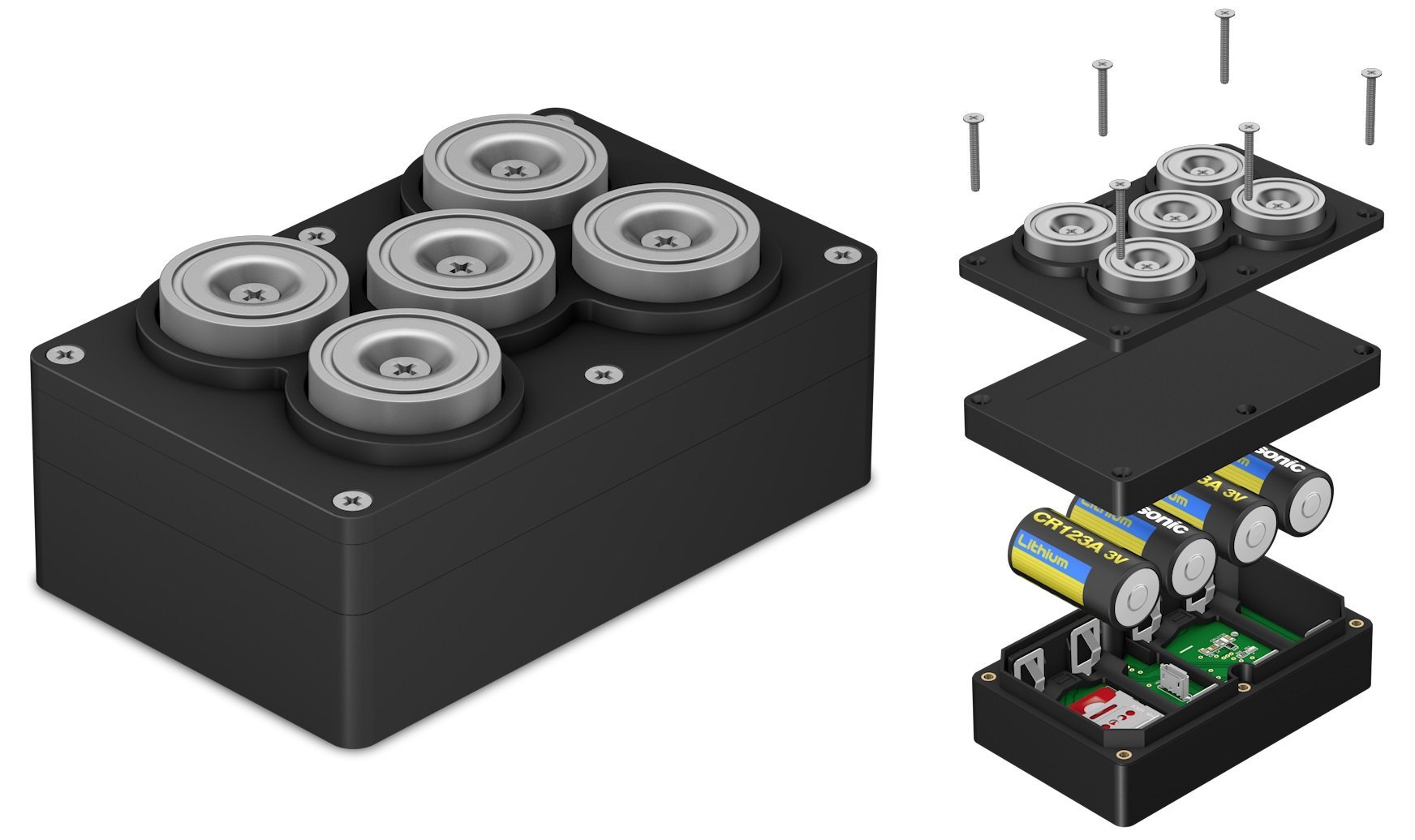 Специальная магнитная подложка для быстрой установки трекера Voyager 6N на металлические поверхности. Сила на отрыв каждого магнита ~ 11 кгс.