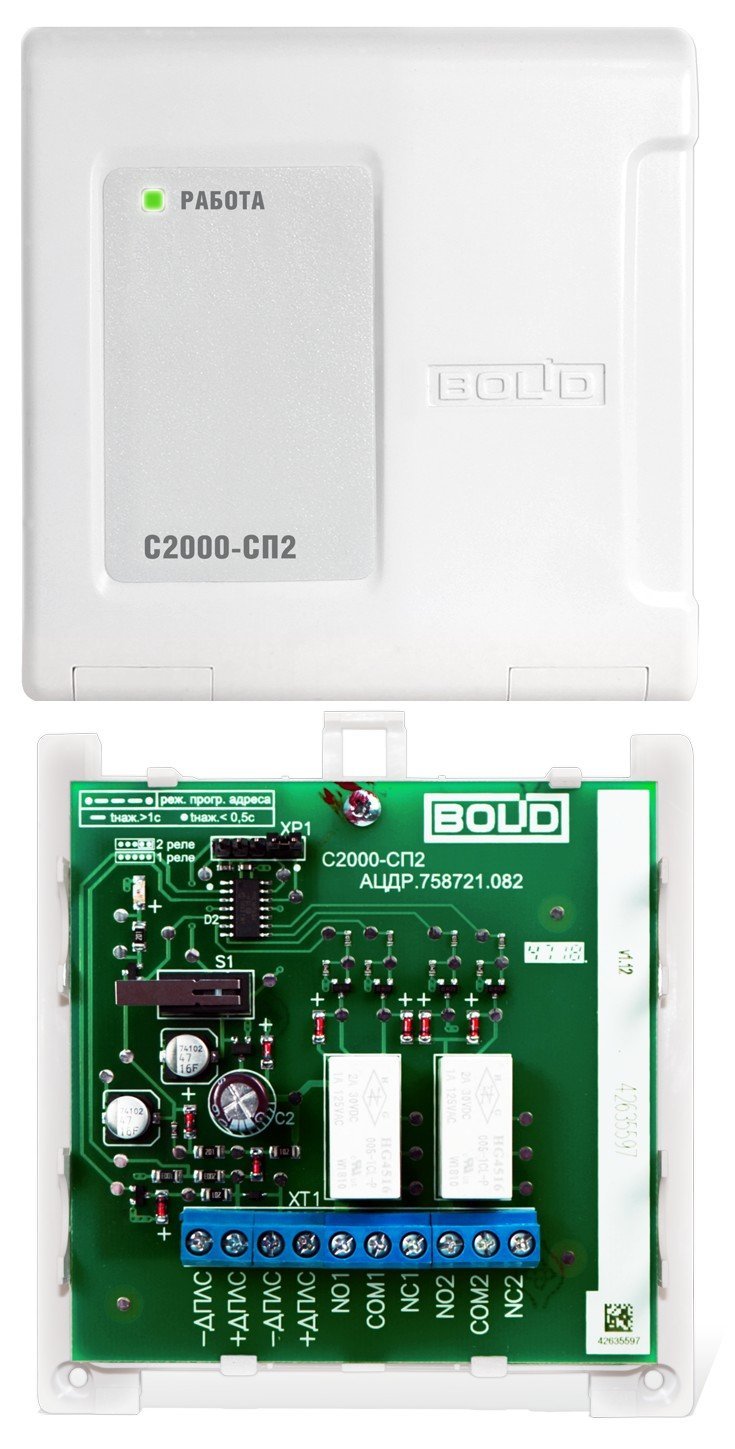 Блок сигнально-пусковой адресный для С2000-КДЛ, 2 выхода (U-коммут.100 В/2 А), U-пит.8...12 В (по ДПЛС), I-потр.1 мА, t-раб.-30...+50°С, 102х107х39 мм