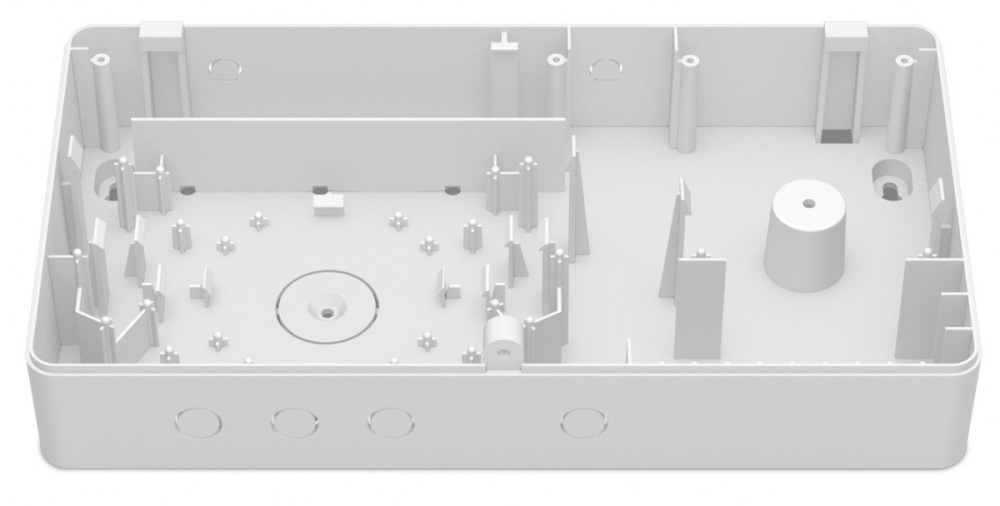 Специализированный пластиковый корпус для объектового оборудования компании "Ритм" под АКБ 1,2Ач (белый, чёрный). Размер: 295х160х77 мм
