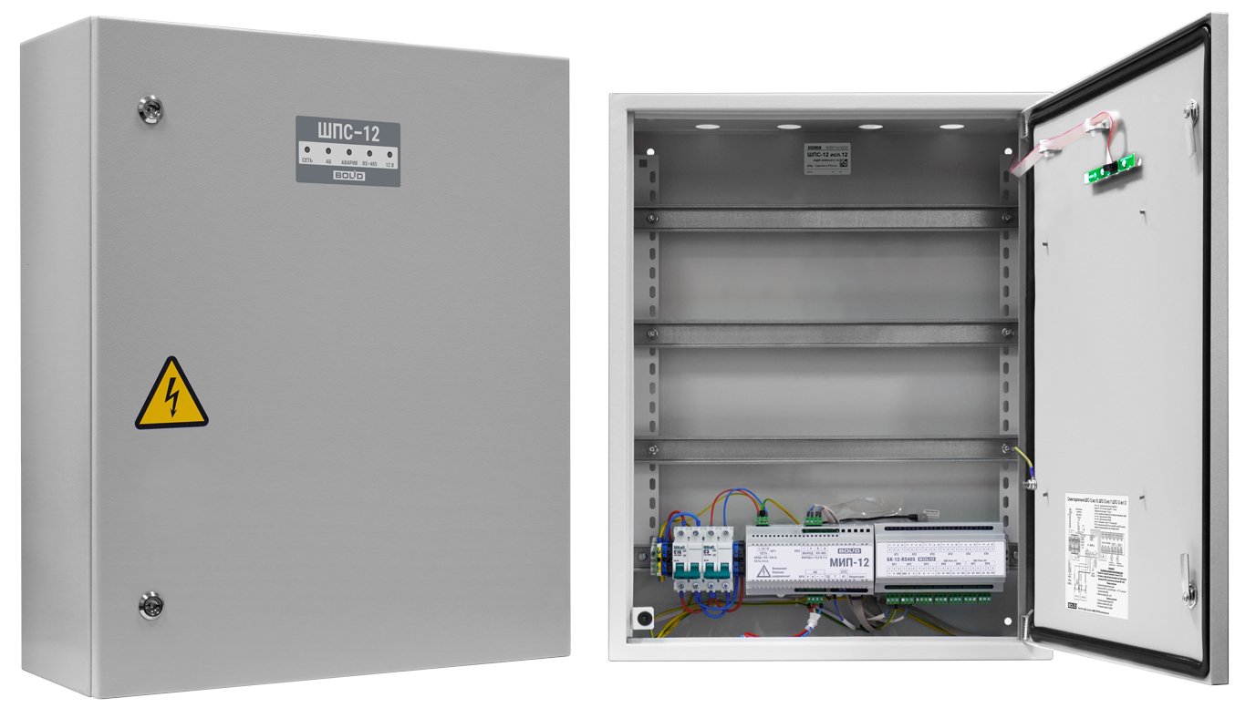 Шкаф для монтажа средств пожарной автоматики с креплением на DIN-рейку 2 ввода питания U-вх.150…253 В, U-вых.13.6±6 В, I-ном.3 А, I-макс.3.5 А, под два АКБ 12 В 17 А·ч встроенный блок коммутации БК-12-RS485 (две изолированные линии интерфейса RS-485 для подключения к компонентам ППКП и ППКУП расположенным за пределами ШПС, одна линия RS-485 для подключения компонентов ППКП внутри ШПС 7 выходов для подключения к приборам внутреннего интерфейса RS-485 7 выходных каналов 12 В с индивидуальной защитой) IP54, t-раб.-10…+40°С, 650х500х220 мм. Возможность установки монтажного комплекта МК-1.