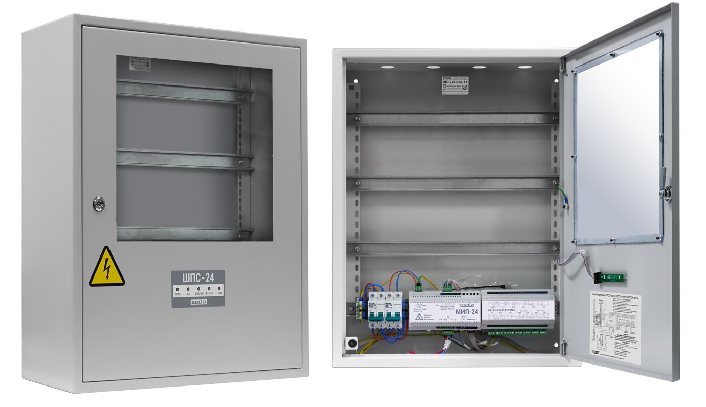Шкаф для монтажа средств пожарной автоматики с креплением на DIN-рейку 2 ввода питания U-вх.150…253 В, U-вых.27.2±6 В, I-ном.2 А, I-макс.2.2 А, под два АКБ 12 В 17 А·ч встроенный блок коммутации БК-24-RS485 (две изолированные линии интерфейса RS-485 для подключения к компонентам ППКП и ППКУП расположенным за пределами ШПС, одна линия RS-485 для подключения компонентов ППКП внутри ШПС 7 выходов для подключения к приборам внутреннего интерфейса RS-485 7 выходных каналов 24 В с индивидуальной защитой) IP41, t-раб.-10…+40°С, 650х500х220 мм. Прозрачное стекло.
