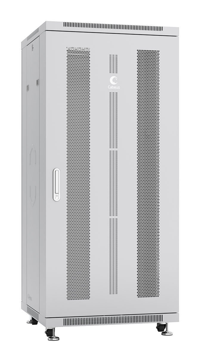 Шкаф монтажный телекоммуникационный 19" напольный для распределительного и серверного оборудования 27U 600x800x1388mm (ШхГхВ) передняя и задняя перфорированные двери, ручка с замком, цвет серый (RAL 7035)