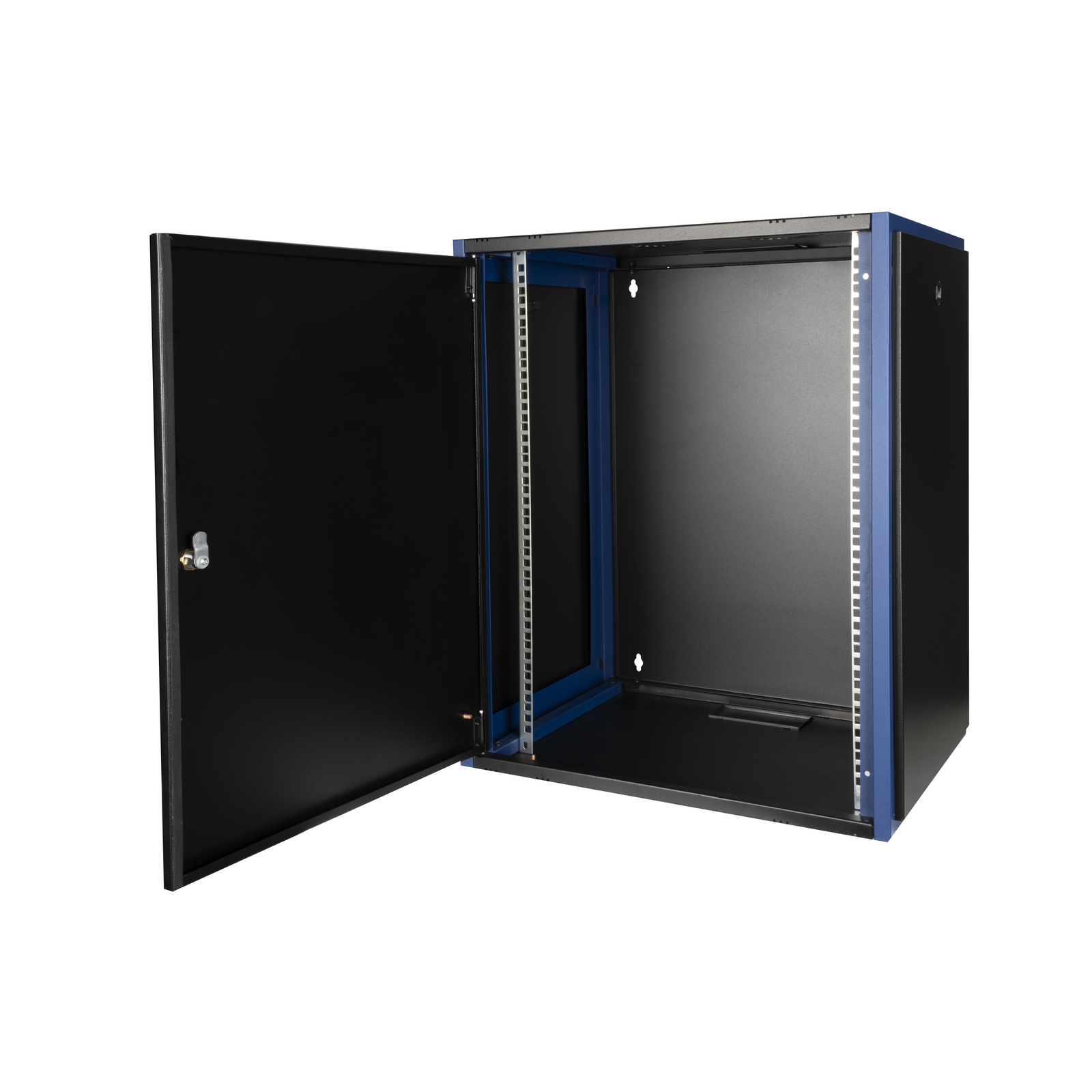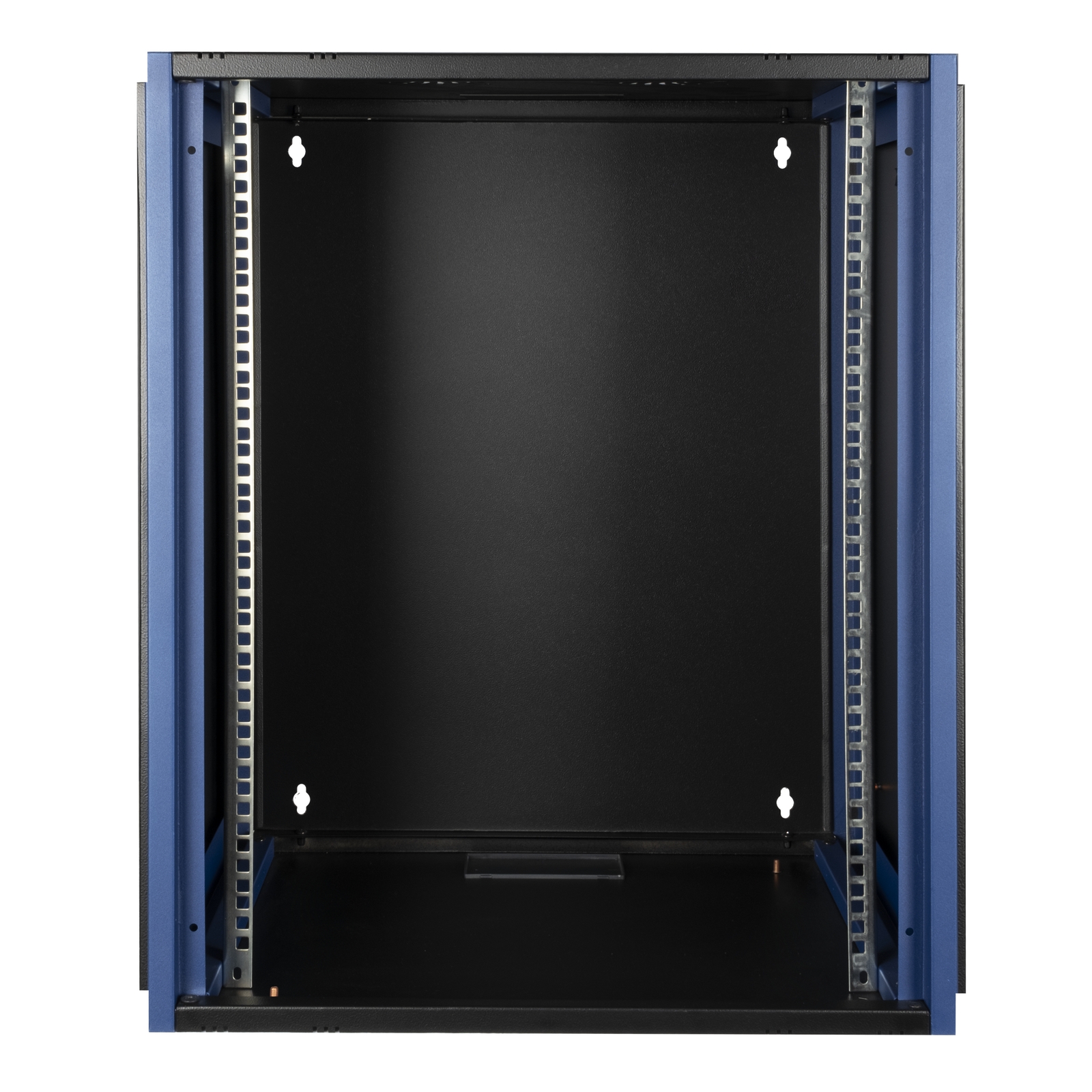 Шкаф телекоммуникационный 19" настенный, 15U, передняя дверь цельнометаллическая, задняя стенка сплошная цельнометаллическая, 728х600х450 мм (ВхШхГ), полезная глубина 434мм, распределенная нагрузка: 50 кг, в комплект поставки входит: комплект крепежа для сборки щеточный кабельный ввод, черный RAL 9005, IP20.