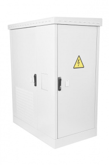 Основные параметры: Ширина — 1045 мм.Глубина — 930 мм.Полезная глубина (внутреннее пространство от панели до закрытой двери) — 820 мм.Перфорированная панель между отсеками. Толщина — 2.5 мм.Система заземления (если нужно, внешнее заземление подключают к комплектной шине).Дверные замки с удобной ручкой (можно заменить на не входящие в комплект антивандальные).Съемный цоколь высотой 100 мм (можно заменить на 300-миллиметровый).Универсальная навеска дверей.Пенорезиновый уплотнитель по контуру каждой двери.Две пары вертикальных направляющих с юнитовой маркировкой.Светодиодный светильник (магнитное крепление), срабатывающий по сигналу датчика двери.Наружная розетка 32 А типа DEKraft серии ВЩ-102 для подключения внешнего источника питания, например дизельного или бензинового генератора.Вентиляционные отверстия фронтальной двери, предохраняющие от попадания внутрь воды и инородных частиц при свободной циркуляции воздуха — «жабры».Несущая способность при распределенной статической нагрузке — 800 кг. В основании и межсекционной панели предусмотрены заглушенные отверстия для ввода кабелей. Конструктивно заглушки универсальны — можно выломать нужное количество отверстий подходящего размера. В комплект включены два кабельных ввода с гайкой М32 (MG32A-25G), 10 резиновых заглушек. Шкаф изготовлен из оцинкованной стали толщиной до 2 мм. Листовые детали окрашены порошковой краской светло-серого (RAL 7035) цвета. Размер — 1045x930x1040 мм, вес — 180 кг. Питание — 230 Вт 50 гц. Для установки шкафа нужна ровная горизонтальная поверхность. Цоколь крепят анкерными болтами.