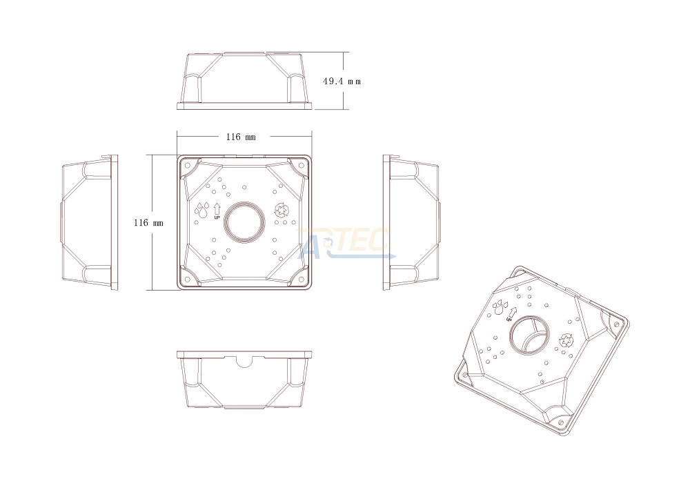 Компактные размеры. Габаритные размеры: 116х116х49.5 мм.