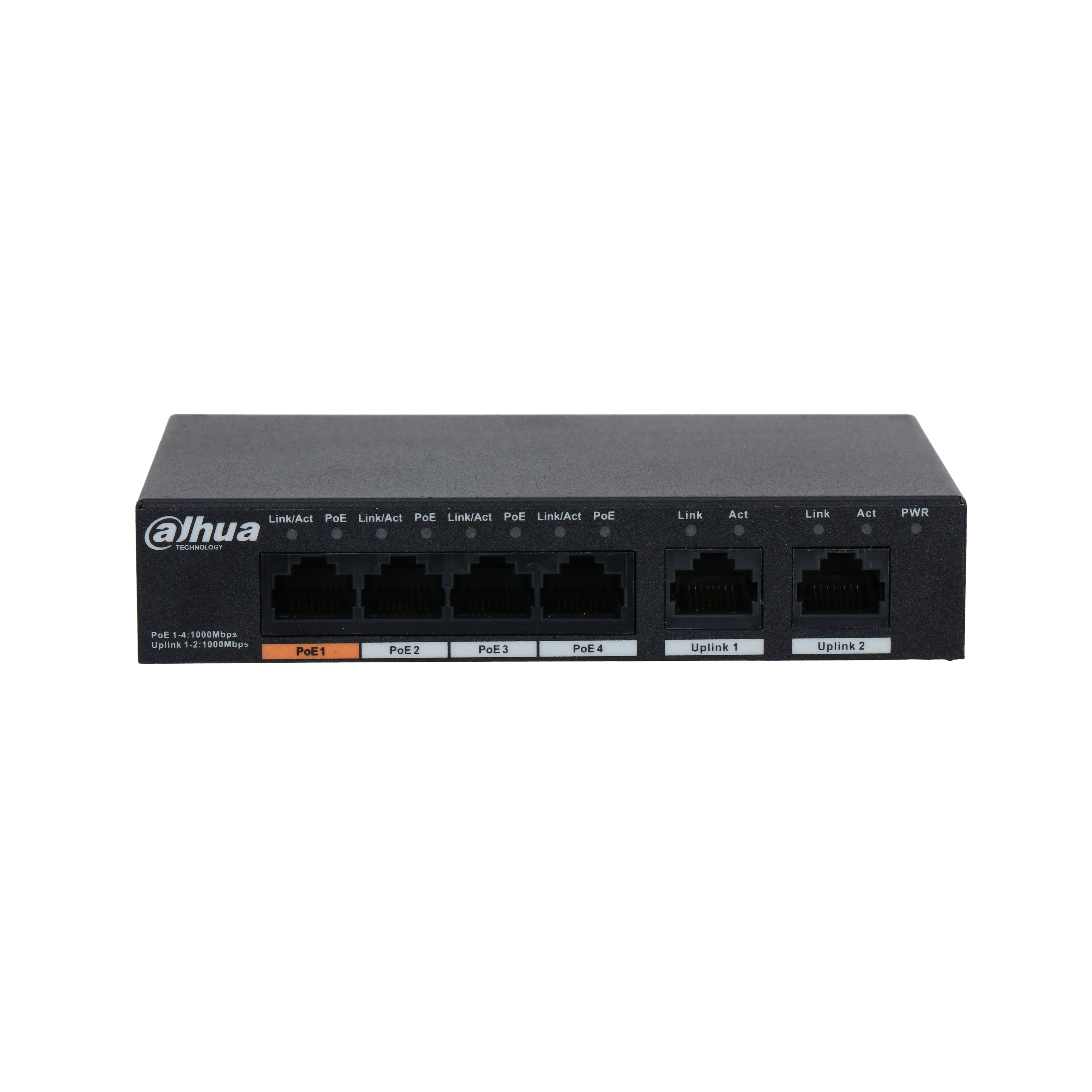 Порты: 4 RJ45 10/100/1000Мбит/с (PoE/PoE+/Hi-PoE), 2 RJ45 10/100/1000Мбит/с (uplink);