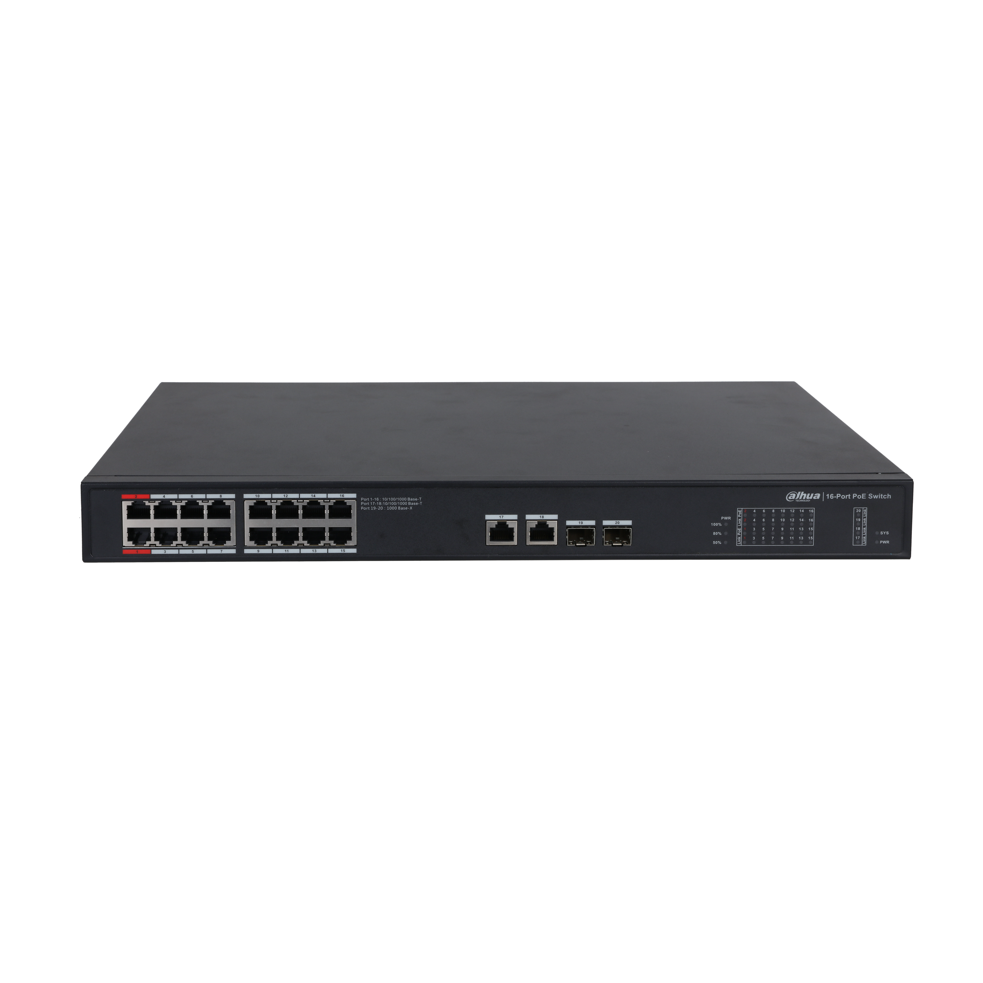 Порты: 24 RJ45 10/100/1000Мбит/с (PoE/PoE+/Hi-PoE), 2 RJ45 10/100/1000Мбит/с (uplink), 2 SFP 1000Мбит/с (uplink);