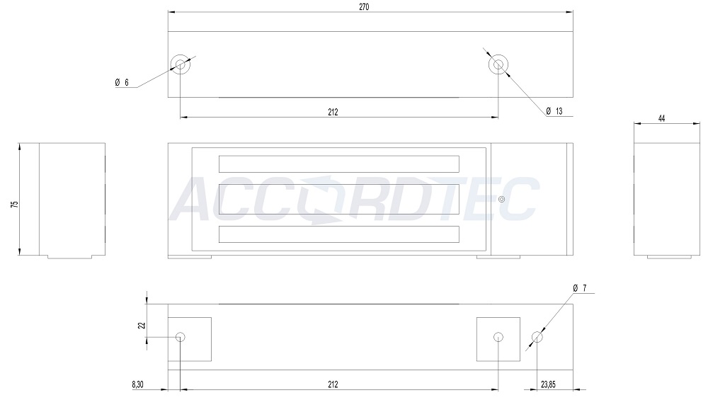 Габаритные размеры: 270x75x45 мм.