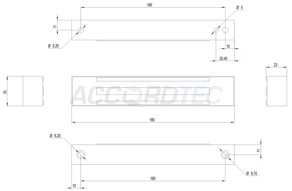 Компактность. Габаритные размеры: 180x32x22 мм., что обеспечивает удобство монтажа и интеграции в дверные конструкции.