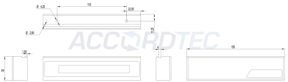 Габаритные размеры электромагнита: 155х38х24 мм.